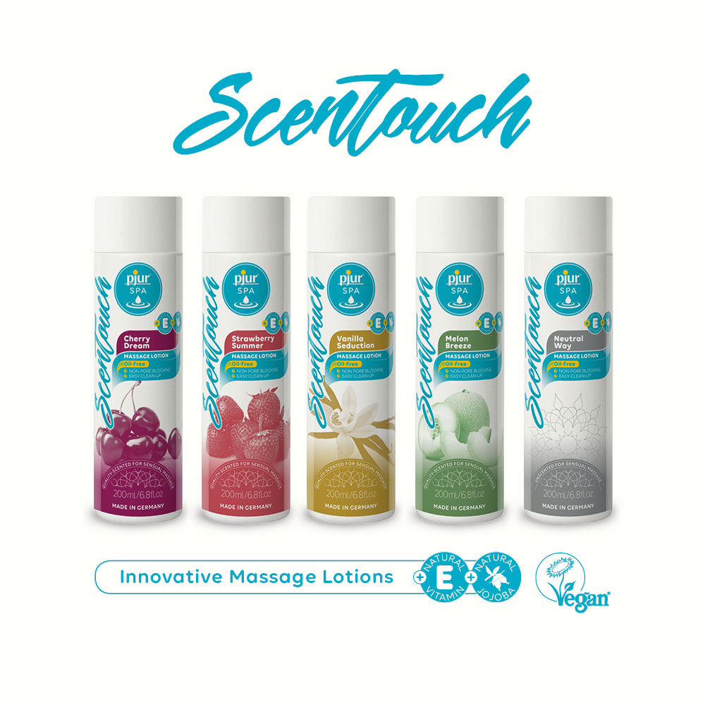 The lotions do not contain any oil and can be wiped off easily. The scents are sensual, delicate and not too intense.